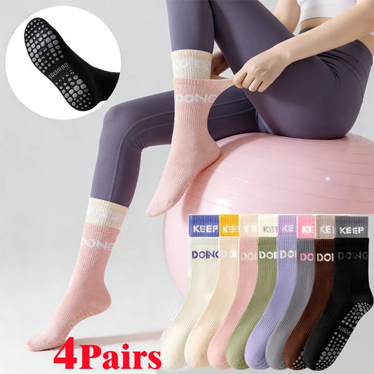 Cute Cotton Non-Slip Pilates Socks - 4 Pairs